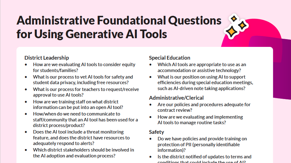 This document produced by Common Sense Education and F3 Law provides educational professionals with questions to help support the responsible